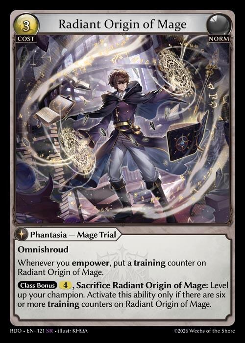 Class Bonus 4, Sacrifice Radiant Origin of Mage: Level up your champion. Activate this ability only if there are six or more training counters on Radiant Origin of Mage.